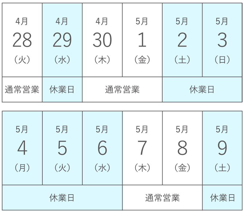 誠に勝手ではございますが、下記の期間を休業日とさせていただきます。